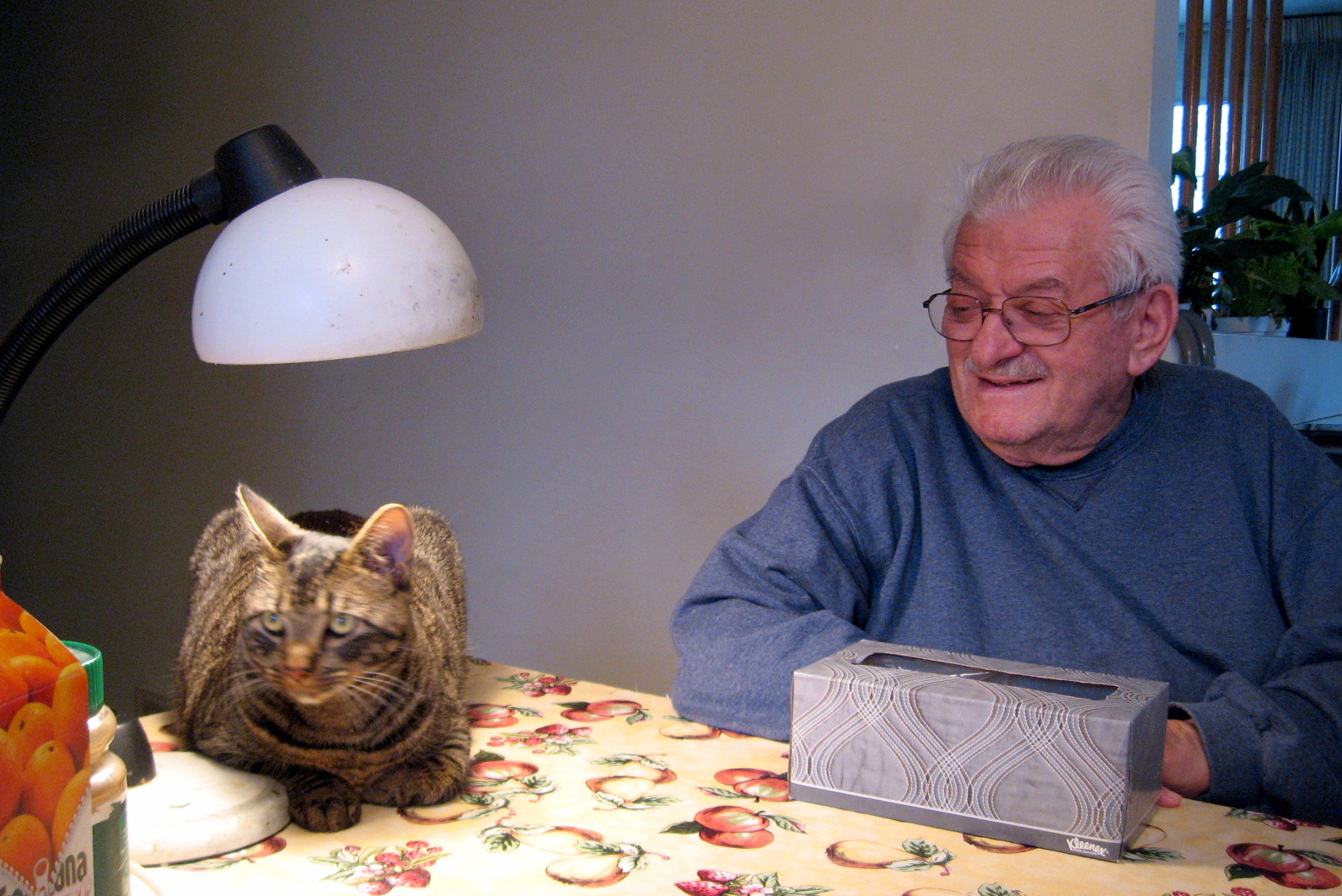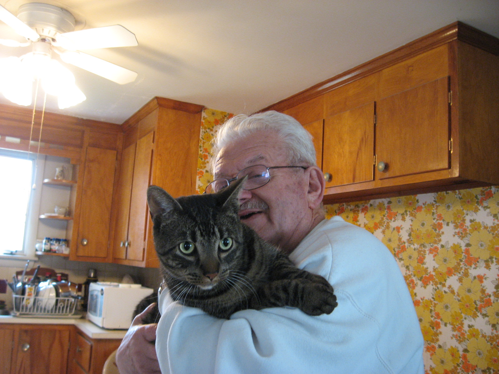 This is also the time to share a photo of my 91-year-old father and his new cat, Miss Ellie.