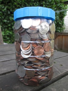 Tonight’s challenge: How much money does my empty mayonnaise jar hold? The person who comes the closest to the average figure will be mercilessly interviewed for this blog.